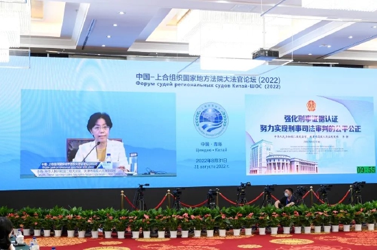近日,中华人民共和国二级大法官、天津市高级人民法院院长李静出席中国—上合组织国家地方法院大法官论坛(2022),就“各国刑事诉讼证据认证规则”作专题发言。