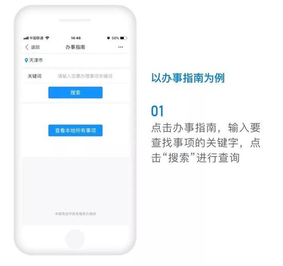 针对外来务工人员,推出医疗服务查询事项,例如“异地定点医疗机构查询”、“天津市从业人员健康体检机构查询”等应用方便外来在津人员在津就医查询。