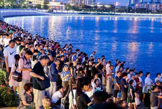 20时,网安号海河游船从古文化街码头启航,沿海河一路行进。与此同时,夜景灯光秀同步上演。