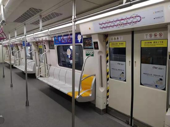 市民可在搭乘地铁网安专列的同时观看车内标语和漫画展板,了解智能时代科技前沿趋势,强化网络安全意识。
