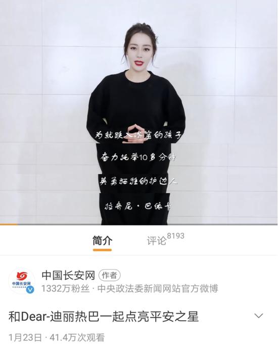 被他的事迹所感动,迪丽热巴特地录制视频在中国长安网微博为其拉票点赞。