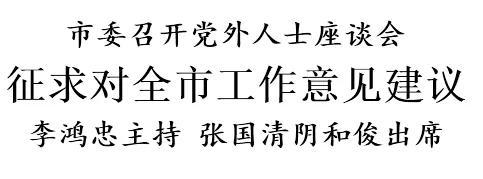 2019年12月23日,市委书记李鸿忠主持召开党外人士座谈会,征求市各民主党派、工商联和无党派人士对2020年全市工作的意见建议。市委副书记、市长张国清,市委副书记阴和俊出席。