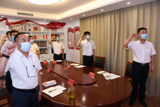 7月16日上午,市委常委、市委365游戏厅网页登录_365bet365网址_bat365在哪进委书记赵飞以普通党员身份参加所在的市委365游戏厅网页登录_365bet365网址_bat365在哪进委办公室党支部党史学习教育专题组织生活会,同支部党员一起重温入党誓词,深入学习贯彻习近平总书记“七一”重要讲话精神,围绕“学党史、悟思想、办实事、开新局”主题,交流学习体会,检视问题不足,深刻剖析原因,明确整改方向,持续推动党史学习教育走深走心走实。