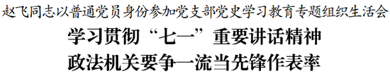 赵飞和大家交流了学习心得体会。他说,通过反复学习习近平总书记“七一”重要讲话,在回顾百年党史光辉历程、展望中华民族光明前景中,更加对信仰信念信心的磅礴思想伟力和强大精神动力有了愈发深刻的实践感悟。