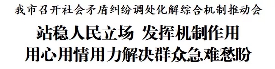 会议要求,各区各部门要提高政治站位、强化政治担当,坚持以人民为中心理念,把矛盾纠纷调处化解与“我为群众办实事”实践活动紧密结合,在“六个坚持”上持续聚力、持续加力。一是坚持站稳人民立场。要做到真情听民意、真心解民忧,用心用情用力为群众排忧解难,大力推动“事要解决”。二是坚持问题导向。要对关系群众切身利益的问题紧盯不放,拿出切实可行的招法措施,提升矛盾纠纷调处化解针对性、实效性。三是坚持强化风险意识。要综合运用释法说理、情绪疏导、关怀帮扶,引导群众依法理性平和解决问题,严防问题叠加激化。四是坚持法治思维和法治方式。要积极营造办事依法、遇事找法、解决问题用法、化解矛盾靠法的社会氛围,依法有效解决难题。五是坚持整合工作资源。要充分发挥党的领导政治优势,各司其职、各负其责,加强沟通、密切协作,形成协同联动强大合力。六是坚持压实战区责任。要落实“一把手”主责、首责、全责,亲自研究部署、亲自组织推动、亲自督促落实,把矛盾解决在当地、化解在基层。