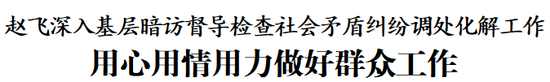 在督导检查过程中,赵飞反复叮嘱矛调中心工作人员,信访工作是送上门来的群众工作。要真正把心贴近群众、把情系于群众,以百姓心为心,抱着“群众有理”“工作有失”“问题有解”的心态,端正工作作风、俯下身子实干,用心耐心倾听,主动换位思考,推动“案结事了”“事心双解”,让群众在表达诉求时、在解决问题中都能感受到党和政府的关怀和温暖,感受到工作人员的真心和热情。