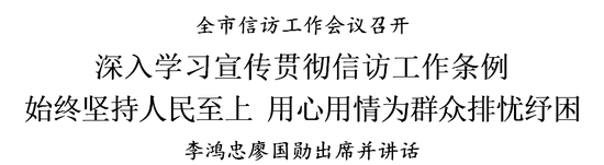 李鸿忠强调,要加强党对信访工作的全面领导、集中统一领导,主动适应新时代信访工作新任务新要求,切实将信访制度优势转化为科学高效的社会治理效能。加强《信访工作条例》的集中学习宣传,各级党校(行政学院)要把条例作为领导干部教育培训的重要内容,强化法规制度意识、提升执行力。制定好我市实施意见,引导群众理性表达诉求、依法维护权益、通过法治方式解决问题。着力从源头上化解矛盾纠纷,发挥三级社会矛盾纠纷调处化解中心作用,深入推进“治理重复信访、化解信访积案”专项工作。坚决守牢网络信访阵地,牢牢把握网上信访主导权。各区各部门要坚持“战区制、主官上”,严格落实信访工作主体责任,各级信访办要加强对条例落实的督察督办。我市信访干部要锤炼对党忠诚政治品格、厚植群众感情、发扬担当和斗争精神、严明纪律规矩,成为让党放心、群众满意的信访工作铁军。