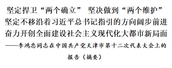 中国共产党天津市第十二次代表大会,是在我们踏上全面建设社会主义现代化国家新征程、满怀豪情迎接党的二十大胜利召开的重要历史时刻,在天津全面建设社会主义现代化大都市的关键时期,召开的一次十分重要的会议。大会的主题是:高举中国特色社会主义伟大旗帜,全面贯彻习近平新时代中国特色社会主义思想,深入贯彻习近平总书记对天津工作“三个着力”重要要求和一系列重要指示批示精神,牢记领袖教导,紧跟核心奋斗,践行初心、担当使命,坚定不移沿着习近平总书记指引的方向阔步前进,奋力开创全面建设社会主义现代化大都市新局面。