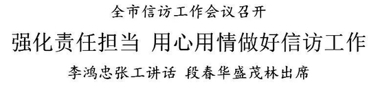 会议强调,要树牢全市一盘棋思想,坚持“战区制、主官上”,确保信访安全保障任务落到实处、见到实效。各区、各部门、各单位要压实属地属事责任,主要负责同志要切实担起第一责任人责任,各级领导干部要采取接访下访、包案包联等形式,与当事人见面、谈话、交心,主动听取民意民声、深入了解民愿民盼,用心用情着力化解群众反映强烈的突出问题。要进一步健全完善党委统一领导、政府组织落实、联席会议协调、信访部门推动、各方齐抓共管的工作格局,加大督促问责力度,真正形成协调联动的工作合力。