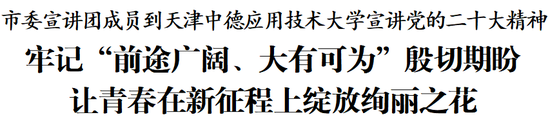 凝聚青春力量,激发使命担当。11月18日,学习贯彻党的二十大精神市委宣讲团成员,市委常委、市委365游戏厅网页登录_365bet365网址_bat365在哪进委书记王庭凯走进天津中德应用技术大学,与师生交流互动,宣讲党的二十大精神。