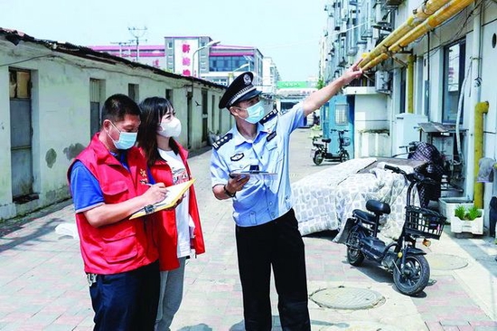 发放防火防盗宣传单、讲解防诈骗常识、帮扶困难群众、调解矛盾纠纷……在津南区北闸口镇政安里社区,社区民警与网格员结伴入户走访已成为工作常态。