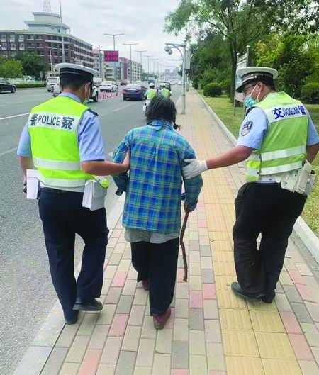近日,河东交警在巡查中发现一名老人徘徊在快速路上,情形十分危险,交警连忙上前将老人带至安全地带,并驾车把老人送回家。