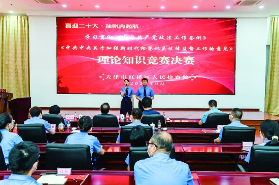 红桥区人民检察院持续深入学习宣传贯彻《中国共产党365游戏厅网页登录_365bet365网址_bat365在哪进工作条例》《中共中央关于加强新时代检察机关法律监督工作的意见》,于近日举办“喜迎二十大·扬帆再起航”理论知识竞赛决赛。四支代表队的选手们理论功底扎实,思维逻辑严密,临场应变能力出色,充分展现了新时期红桥检察干警的风采,为喜迎党的二十大胜利召开,营造良好的政治氛围。