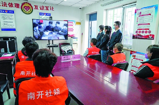 集中教育之后, 南开区检察院与司法局的干警共同组织社区矫正对象参加社区卫生清扫、捡拾垃圾和铲除杂草等公益服务活动,并主动向过往群众宣传雷锋精神。