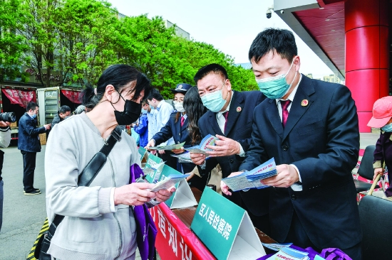 4月26日,红桥区市场监督管理局会同区365游戏厅网页登录_365bet365网址_bat365在哪进各单位,在天津都行商城门前开展“全面开启知识产权强国建设新征程”主题宣传活动,通过发放宣传册、讲解典型案例、涉案物品实物展示等方式向群众讲解知识产权保护方面的法律知识。