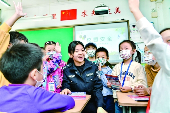 日前,随着辖区内中小学陆续恢复线下教学,公安南开分局民警走进校园,为学生们及时带来“校园安全课”,通过安全防范知识讲解和案例介绍,帮助孩子们增强安全意识,提升防范能力。图为王顶堤派出所社区民警在华夏小学开讲校园安全课。