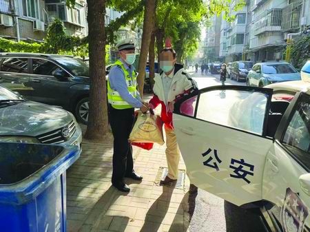 两名辅警将老人搀到路边安全地带,边安抚老人情绪,边进一步询问其相关信息。这时,一辆白色小客车突然停在路边,一名年轻女子下了车快步向老人跑来。经询问,女子表示自己是老人的女儿,发现老人走失后就赶紧开车出来寻找,终于在友谊路与宾水道交口找到走失的老人。在将老人安全送上车后,年轻女子不断向热心辅警表示感谢:“谢谢,幸亏有你们!”