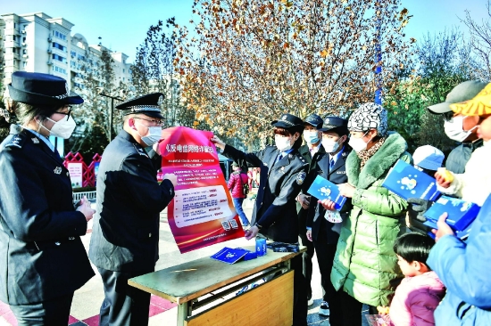日前,公安南开分局广开派出所联合打击犯罪侦查支队九大队在南开公园共同开展“预防网络诈骗、筑牢反诈堡垒”集中宣传活动。民警通过现场发放宣传图册、集中讲解等方式,向群众宣传普及《反电信网络诈骗法》,进一步提高群众对电信网络诈骗的防范意识和辨别能力。