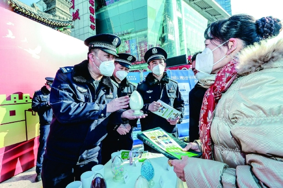 日前,河北区禁毒办联合公安河北分局、河北区司法局、双口戒毒所河北大队在大悲院广场举办主题禁毒宣传活动,向群众开展毒品预防教育,倡导禁毒理念。图为双口戒毒所河北大队司法警察向群众展示仿真毒品模型。