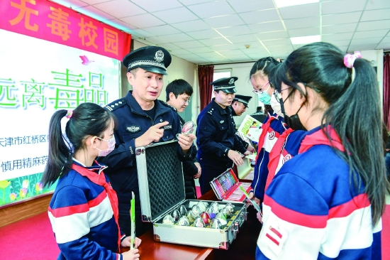 新学期伊始,按照市禁毒办的工作部署,各区禁毒办联合相关单位,走进校园开展“开学第一课”禁毒主题宣传教育,进一步提升在校学生的拒毒防毒意识和能力,促进校园禁毒教育全覆盖。图为红桥区禁毒办、市港南戒毒所、红桥区检察院联合铃铛阁街道、红桥区中心小学,共同开展禁毒教育主题宣讲活动。