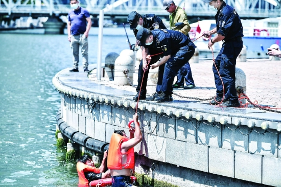 公安河东分局特警支队二大队组织开展防汛救援演练,进一步提升队员的应急处置和协同配合能力,为应对汛期做好准备。图为演练现场。