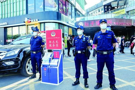 场景二:北辰区某商场附近的“郭志龙服务岗”,特警队员全副武装、坚守岗位,确保24小时社会面巡控无疏漏,面对突发情况做到快速反应、妥善处置。这些年轻的特警队员,如今有一个更加“闪亮”的身份——青年安保突击队成员。