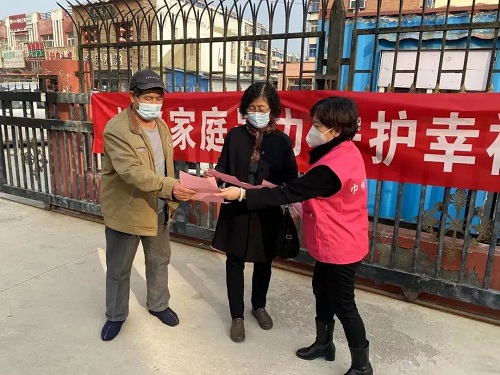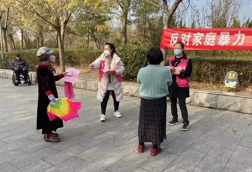 广泛宣传,勇敢说“不”。疫情防控期间,在做好自身防护的同时,巾帼志愿者们广泛开展室外宣传。她们走上广场、街头分发《反家庭暴力法》宣传材料,将“法”送到更多居民的手中。宣传中,志愿者们鼓励妇女群众面对施暴行为要坚决说“不”,勇敢说“不”,对家庭暴力做到“零容忍” ,依法保护自身权益。