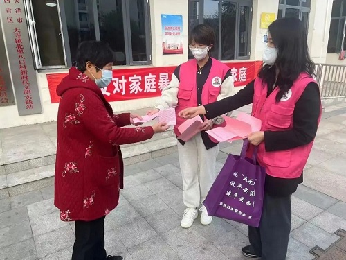 为进一步增强广大妇女和家庭知法、懂法、用法的法律意识,预防和制止家庭暴力发生,促进家庭和谐,西青区大寺镇妇联组织开展“拒绝家庭暴力,守护幸福平安”主题学习宣传活动。