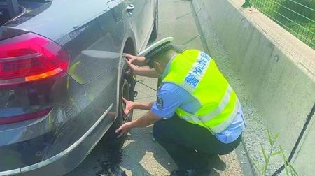 9月10日午间,交警高速支队京津大队交警潘印天和辅警冯宪龙、张啸桐巡查至京津高速公路上行59公里处时,发现应急车道内停靠着一辆白色SUV,车旁有三人正在焦急的来回踱步,并不时向四处张望。交警询问得知,该车行至此处突发爆胎,驾乘人员正不知所措。三人在做好相关安全放防护措施后,在保障安全的前提下快速帮助驾驶人换好了车辆备胎。