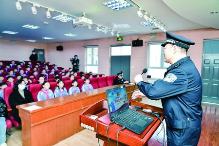 ▲ 2月13日是新学期开学首日,公安河北分局宁园街派出所民警走进宁园街小学举办专题讲座,通过典型案例剖析和现场互动提问等方式,以通俗易懂、深入浅出的语言,宣讲《未成年人保护法》等法律知识,传授安全防范常识,引导学生珍爱生命、敬畏法律。