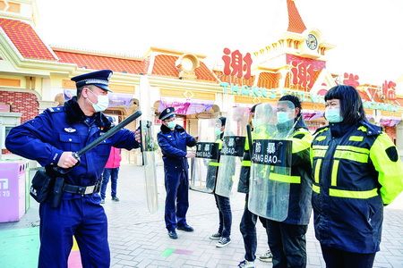 近日,随着天气回暖,外出游玩的市民增多。为确保游客安全,滨海新区公安局纬九路派出所民警来到辖区景点“方特欢乐世界”开展安全检查及相关培训,确保景区秩序安全稳定,严防发生各类安全事故。